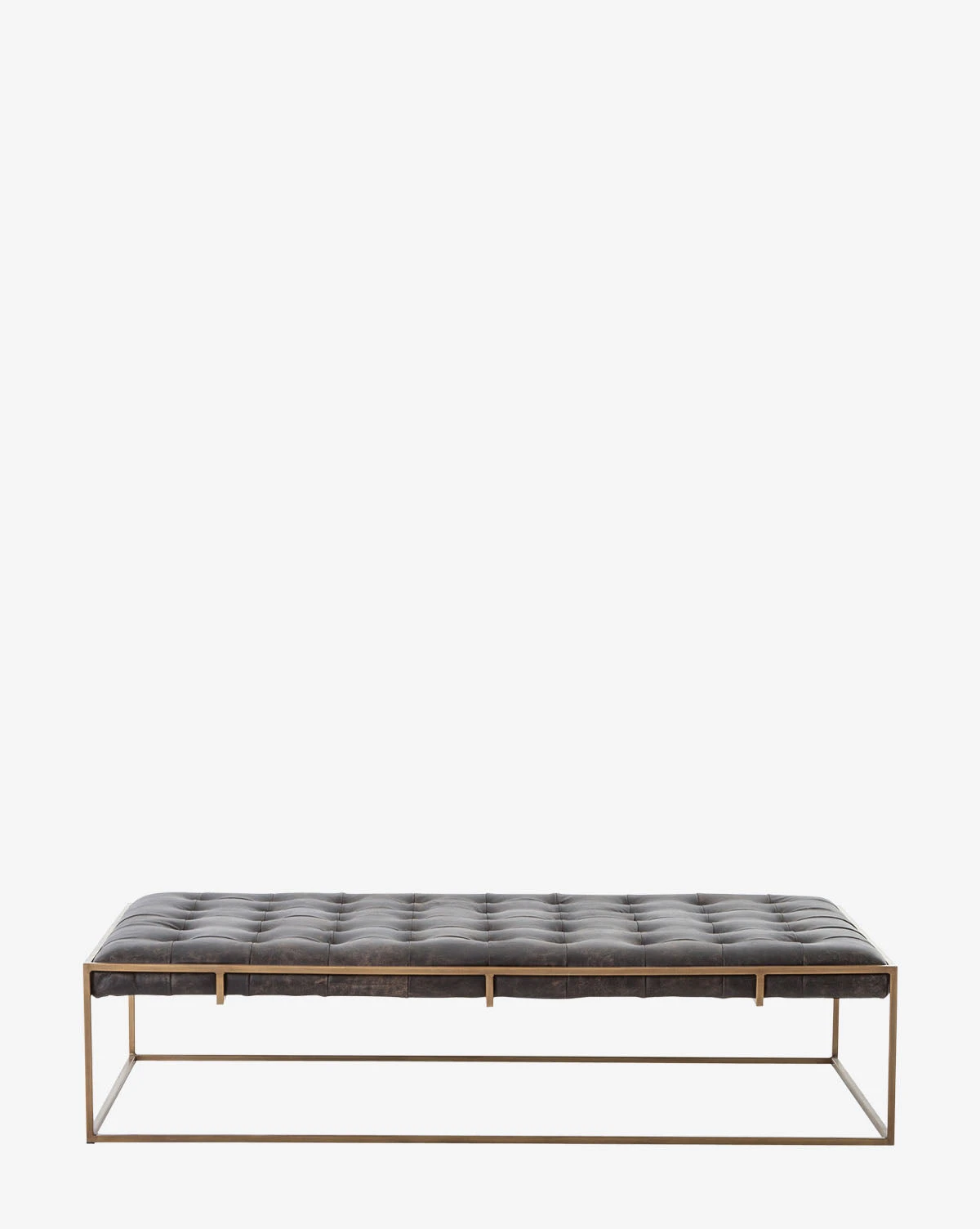 This coffee table doesnโt need a surplus of accessories to look great. Blind-tufted, top-grain leather tops the antique brass base, making a classy and charming addition to a space.