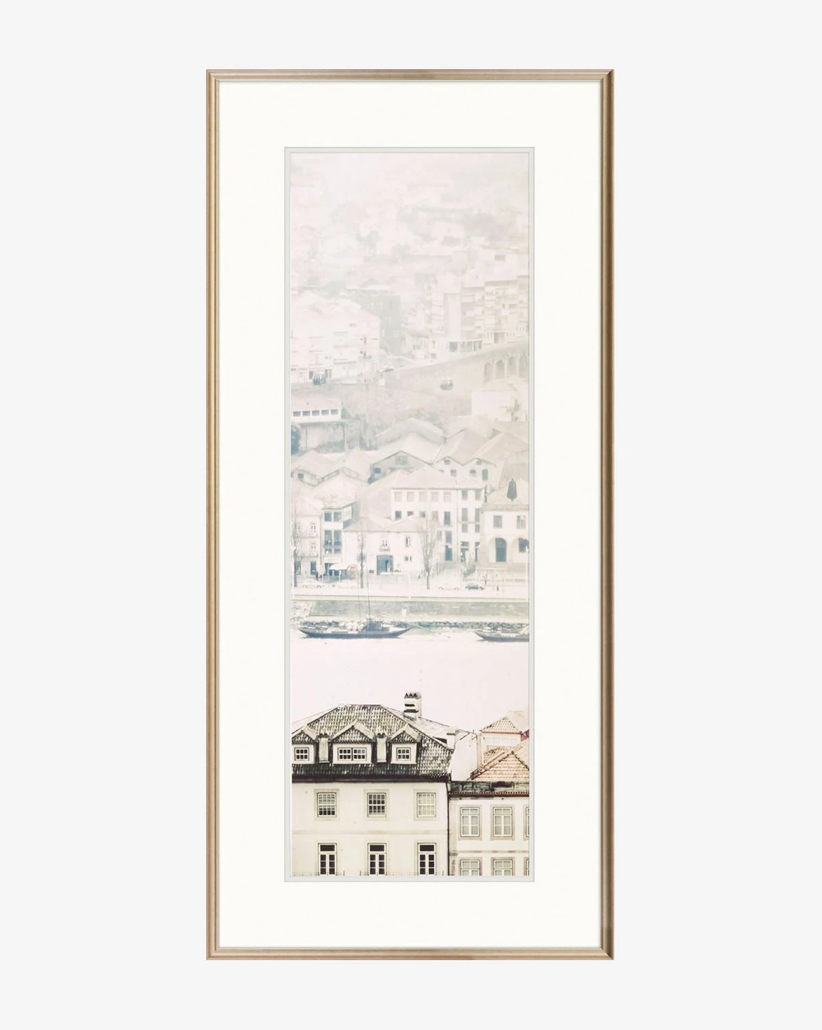 This photograph captures the essence of the Ribeira District in Portugal’s city Porto. With a soft blush shade that adds a romantic touch to this uniquely tall photograph.