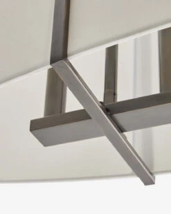 The Presley Chandelier uses simple and contemporary design elements to create a beautifully refined piece. Suspended from a geometric steel structure, the round white linen shade is pronounced, bringing warm light to your space with a unique silhouette.