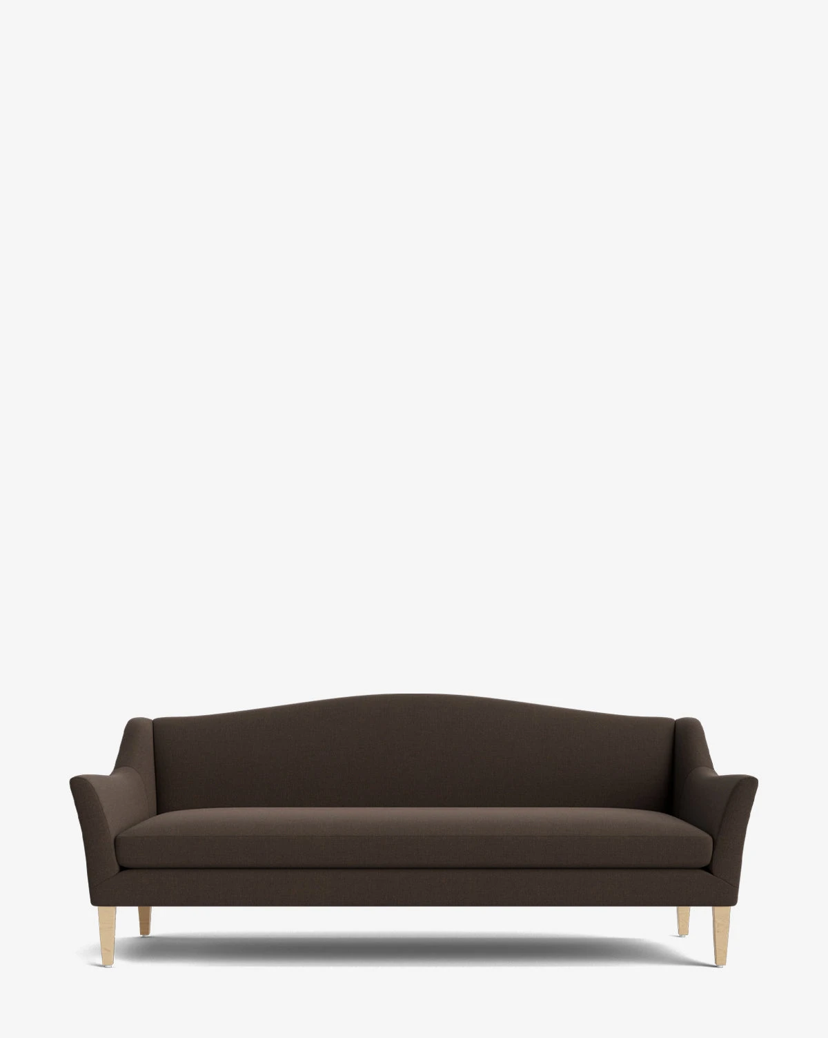 Made to order with a classic silhouette, the Prudence Sofa has tapered oak legs that hold its frame with elegantly curved arms and a rounded top. Designed to complement and elevate your home, the sofa is available in a selection of high-quality fabrics that highlight its timeless structure.