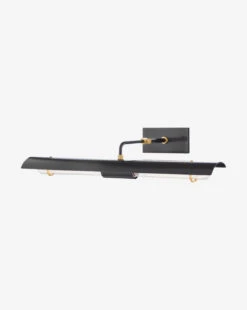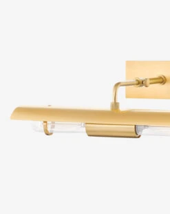 Framing a picture, styled over open shelving, or even attached to your built-ins, the Raelynn Picture Light highlights your favorite pieces throughout your home. In either an aged brass or old bronze finish and an elegantly slender shape, its sophisticated form elevates your existing styling.