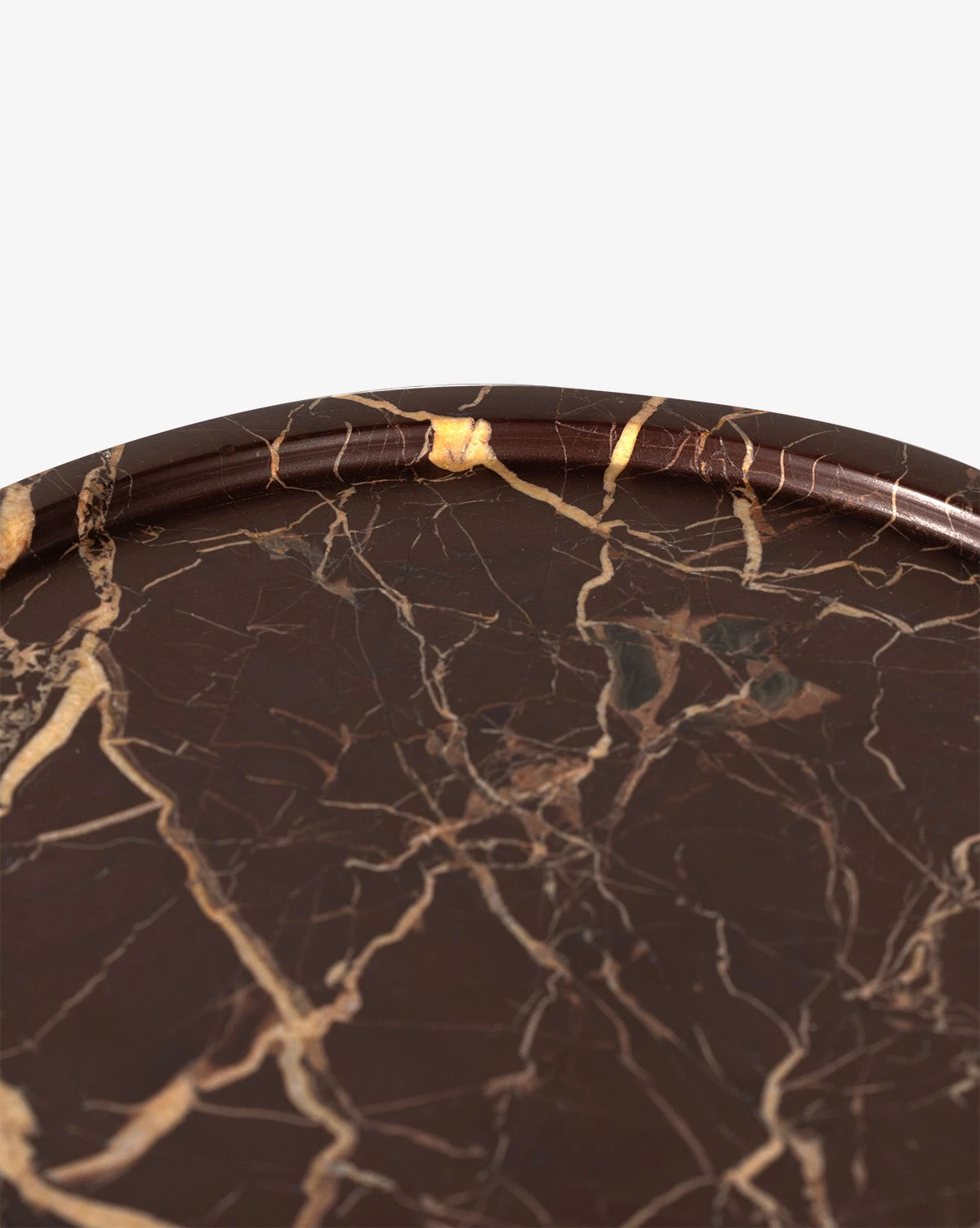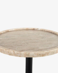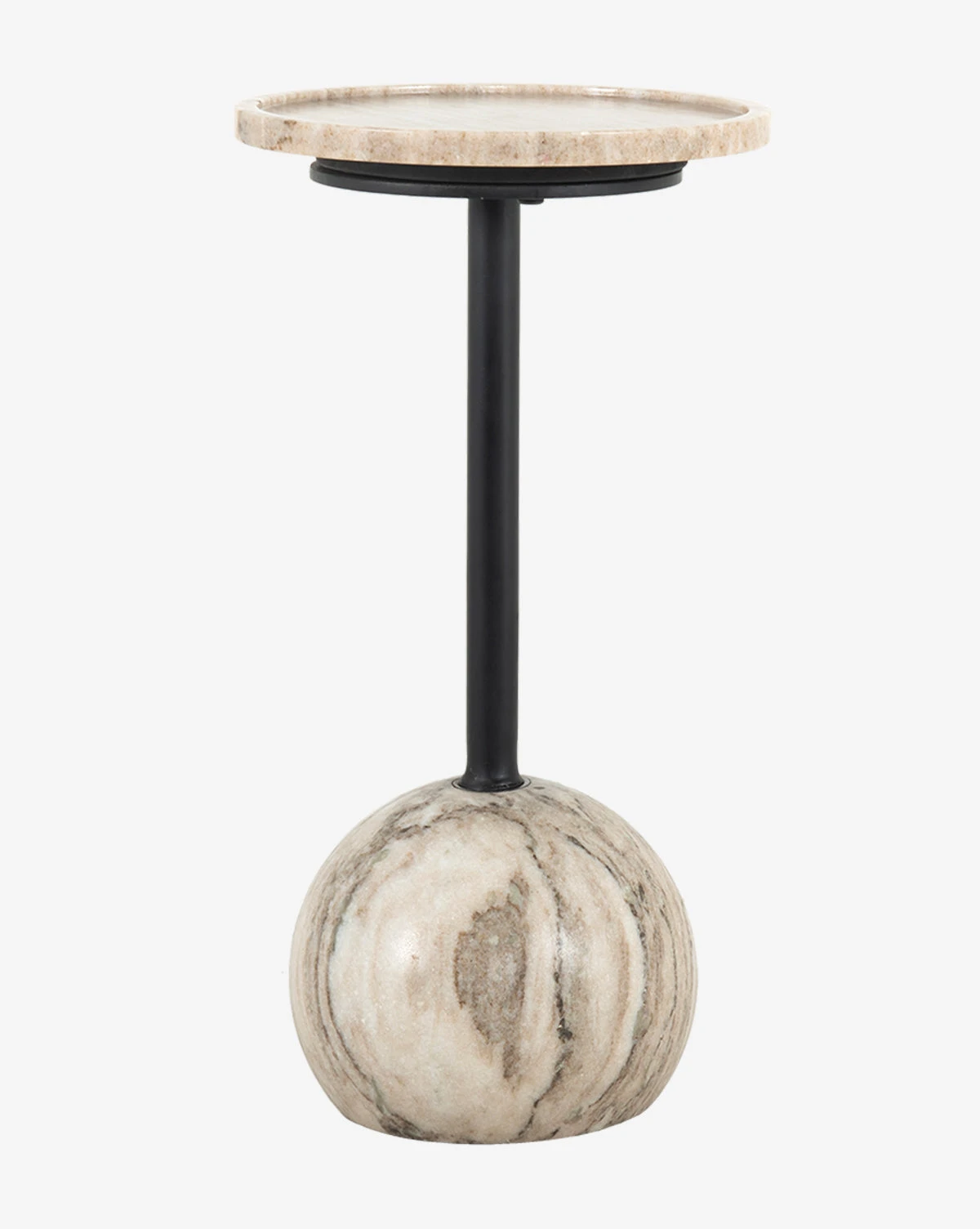 Make a statement with the stunning material mix of the Raelynn Side Table. Crafted from antique marble and sleek iron, this table features an eye-catching base and rounded tray-style tabletop, perfect for holding your favorite book or drink next to your sofa.