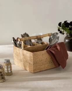 From picnics to everyday indoor gatherings, the Rattan Utensil Caddy makes organization seamless and elegant. Its woven design is charming and romantic, with a relaxed feel that perfectly suits summer gatherings while timeless enough to last throughout the seasons.