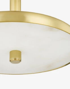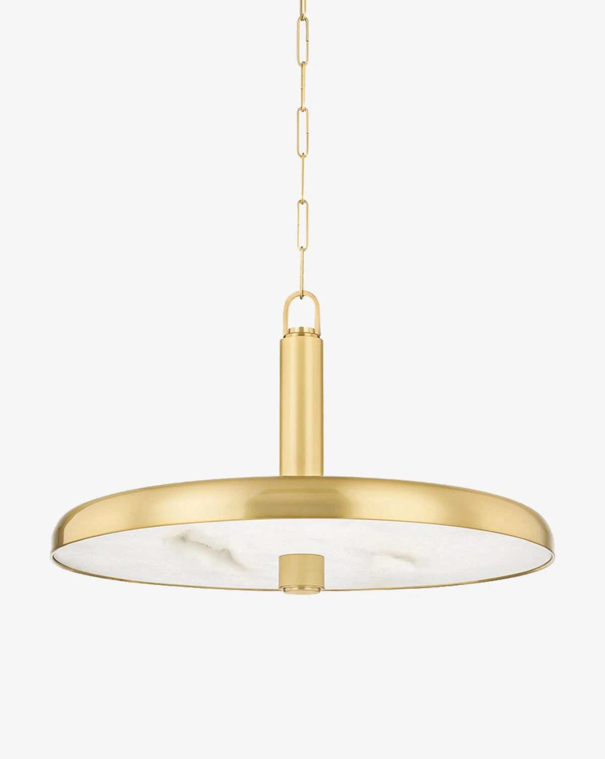 Simple yet captivating, the Reynolds Aged Brass Pendant is crafted from brass-finished steel and alabaster. The round pendant has an updated industrial feel, striking a beautiful balance with its mixed materials.