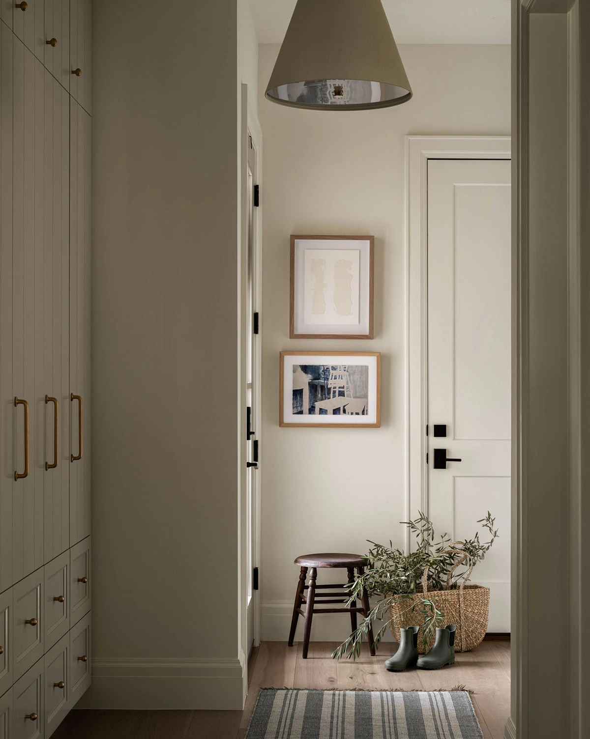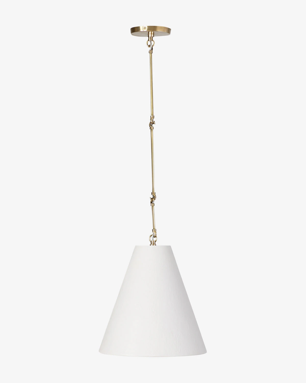 Crafted from an elegant combination of white plaster and brass, our Reynolds Pendant is streamlined and sophisticated. With a long shade, the pendant seamlessly illuminates your space with warm light and brings a complementary neutral tone to your decor.