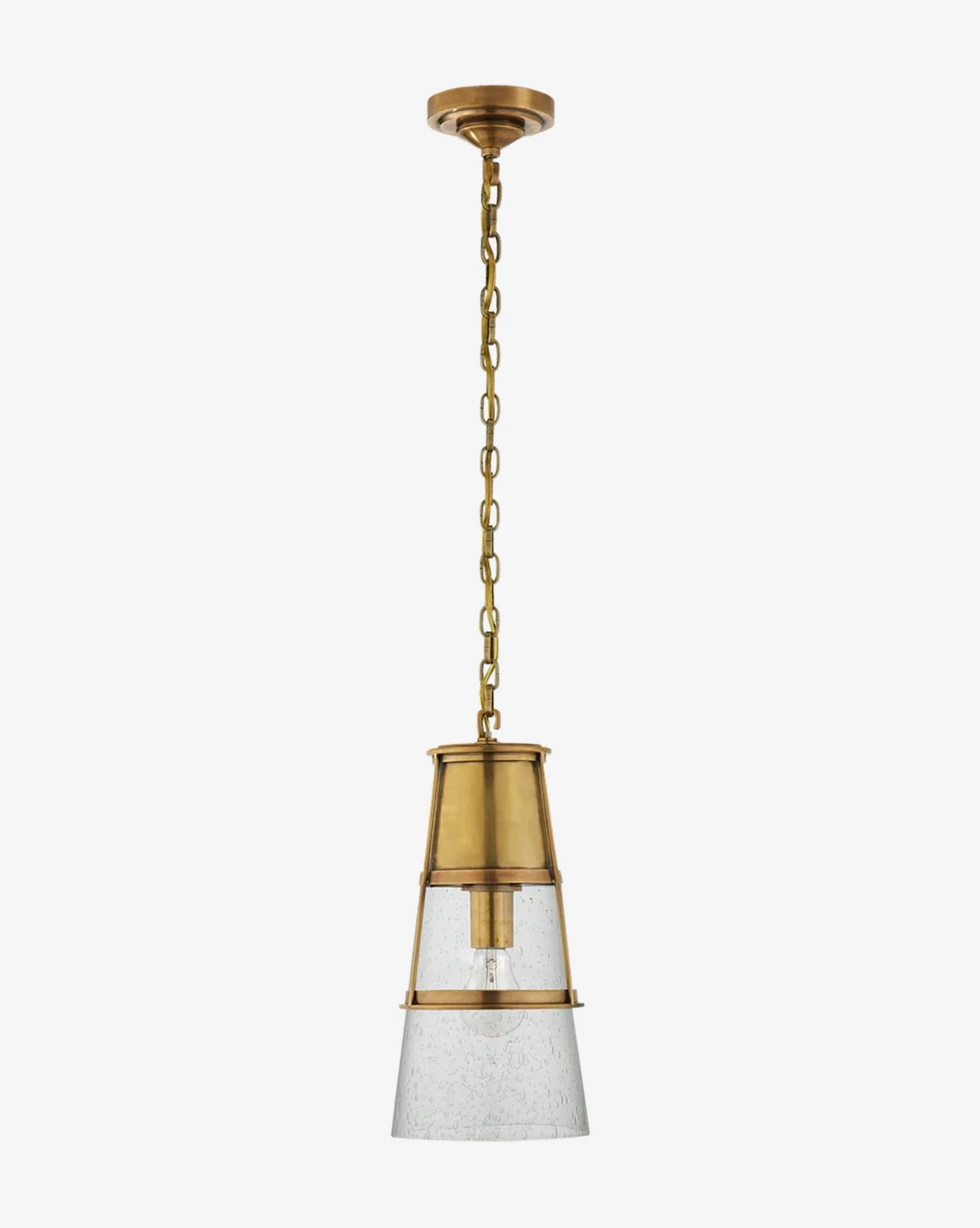 With a full array of metal finishes, and shade options, the streamlined silhouette of the Robinson Pendant looks good in any material mix.