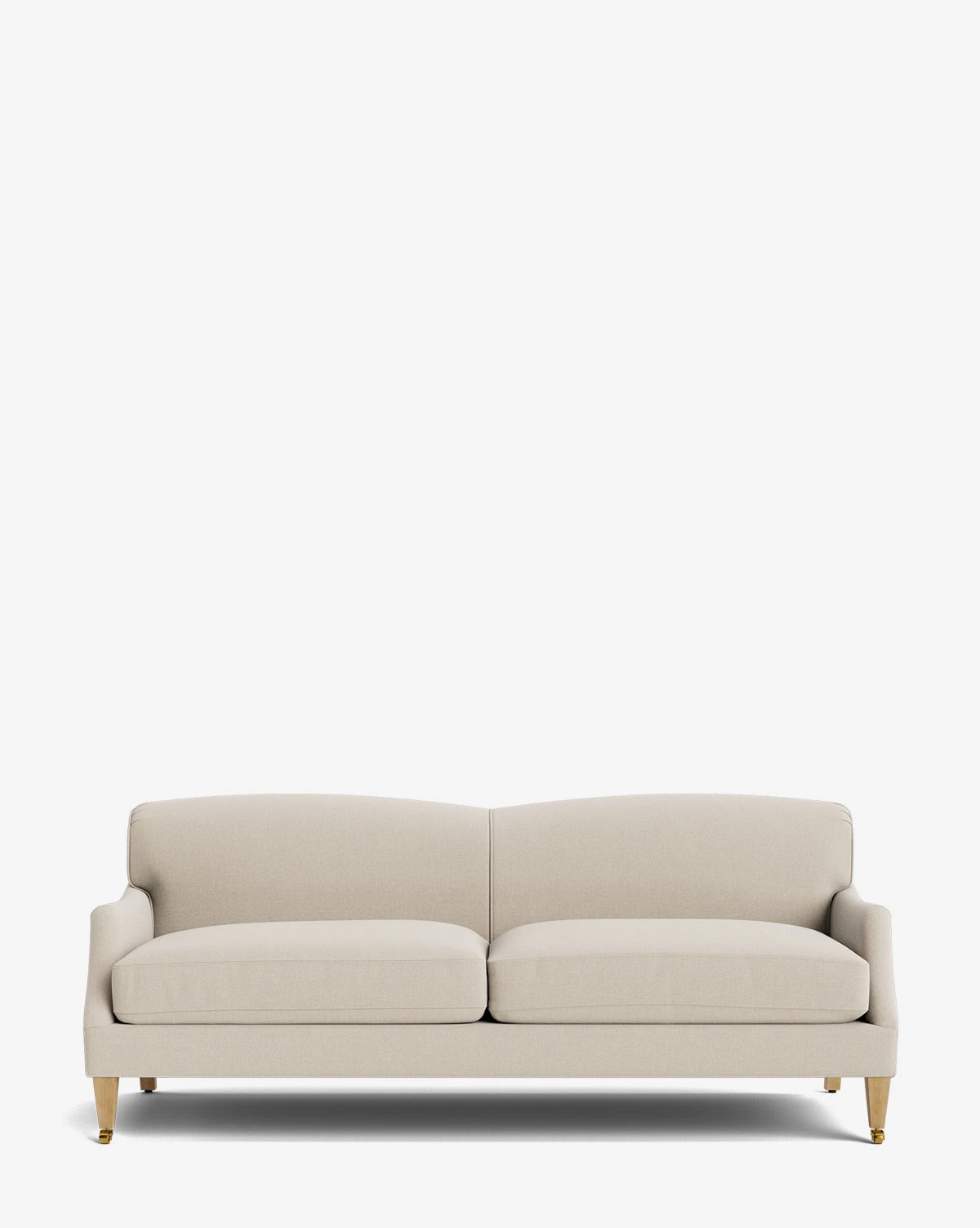 Our Rowley Upholstered Sofa reimagines traditional design with its subtly curved back and arm design and tapered maple legs with brass casters. Featuring plush cushions with a relaxed yet sturdy feel, this sofa is entirely hand-crafted. Customize this made-to-order piece with an array of high-quality fabric choices to personalize your space.