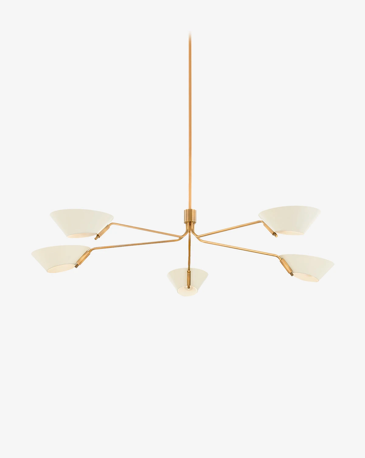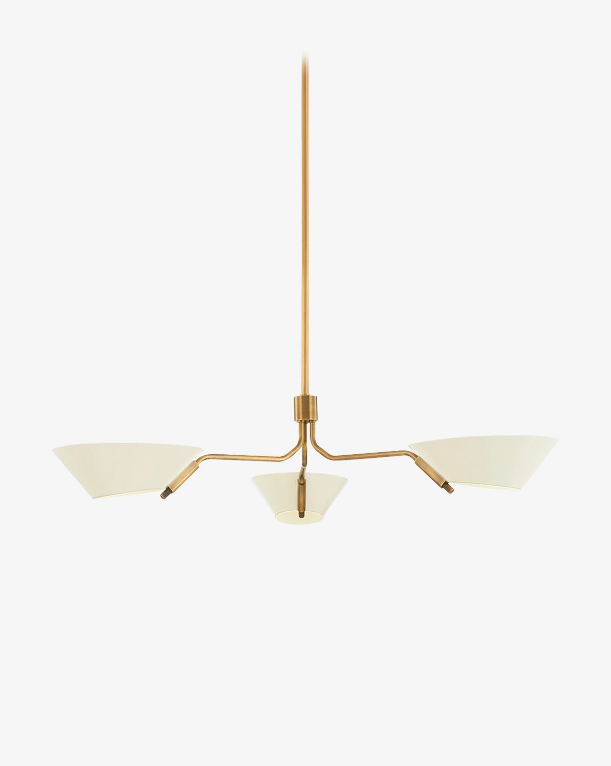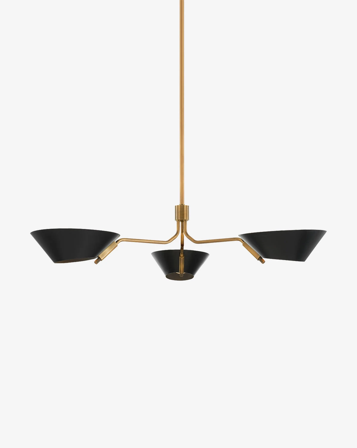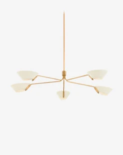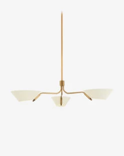 Creatively designed, the Sacramento Chandelier features simple shades that are open on both ends, for soft and even lighting. In two finishes, the neutral shades provide welcome contrast to the sleek patina brass structure.