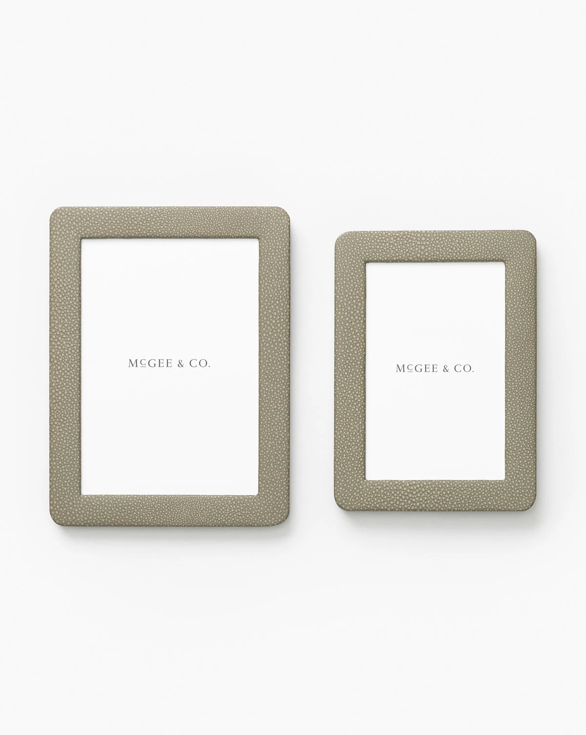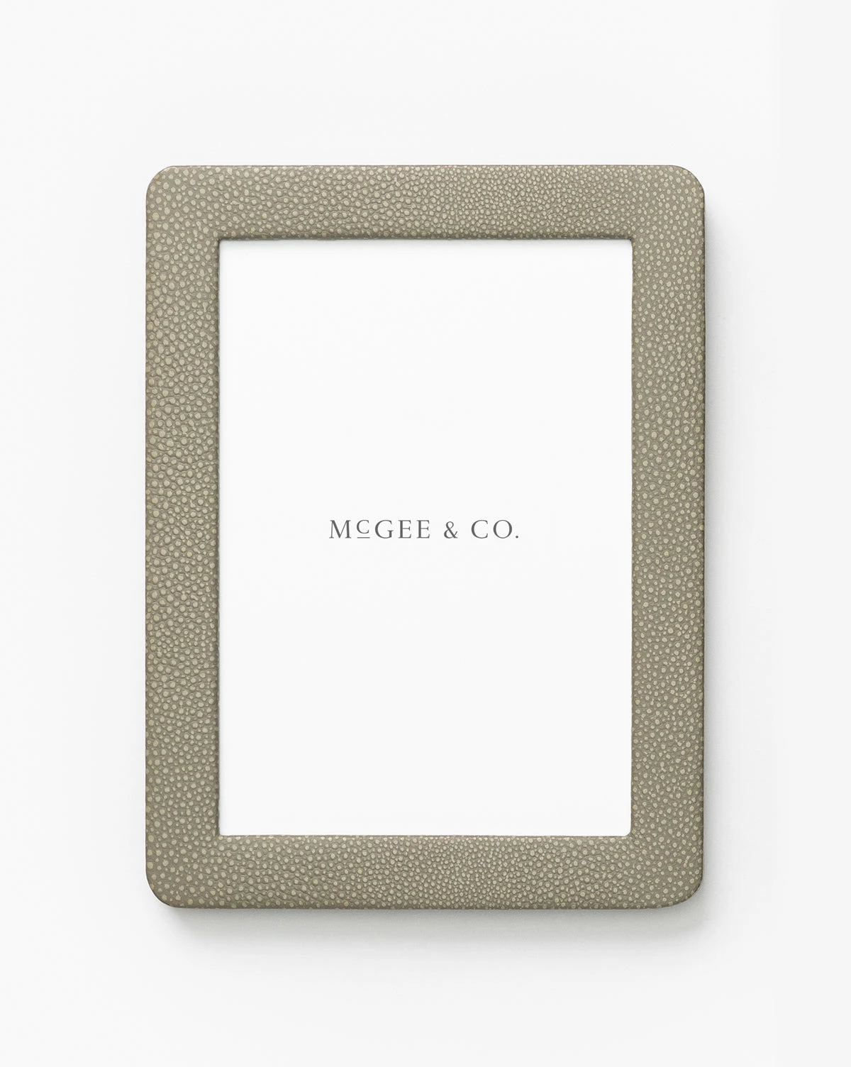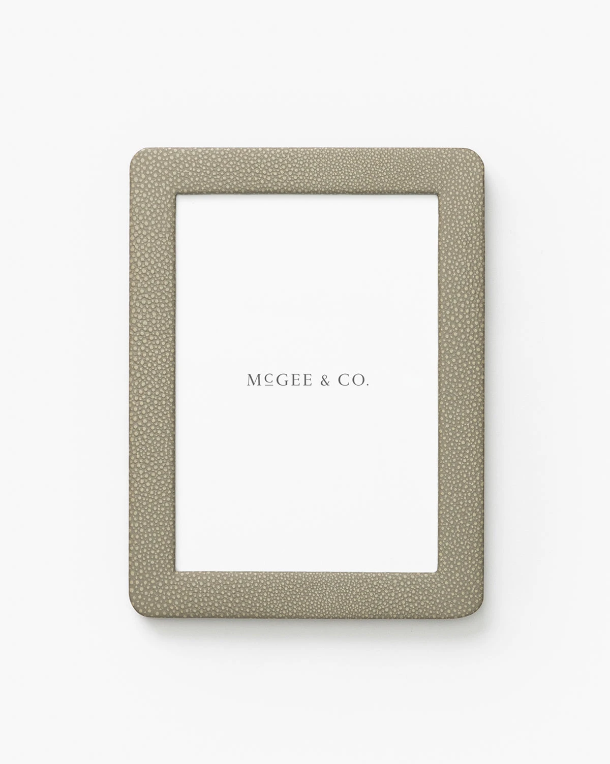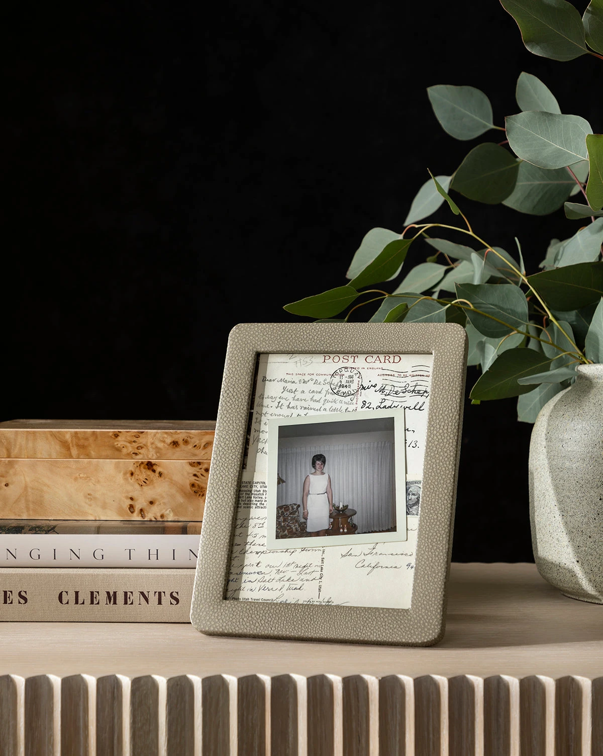 Clean and sophisticated, the Shagreen Gray Picture Frame is straightforward in design, using shagreen leather to give a touch of natural material to your vignettes. With rounded edges and soft lines, this piece perfectly accentuates and elevates prints and photographs for a subtle touch of elegance in your space.