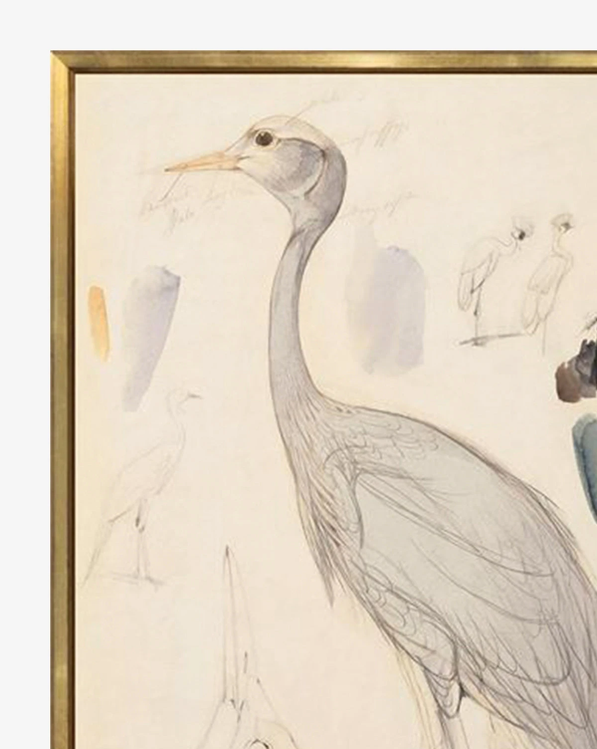 In an airy sketch painted in watercolor, Standing Crane depicts a tall bird in an unusual yet timeless style. With scattered, thick brush strokes and other small thumbnail sketches abstractly placed around the subject, Standing Crane has a thoughtful, intentional feel that adds an imaginative quality to your child’s spaces.