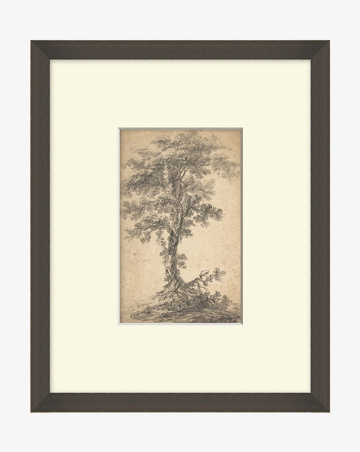 Detailed and moody, Standing Still has a vintage look with delicate lines that give its rustic landscape character and movement. The pieces is presented as a giclee print on paper within a distressed black wood frame.