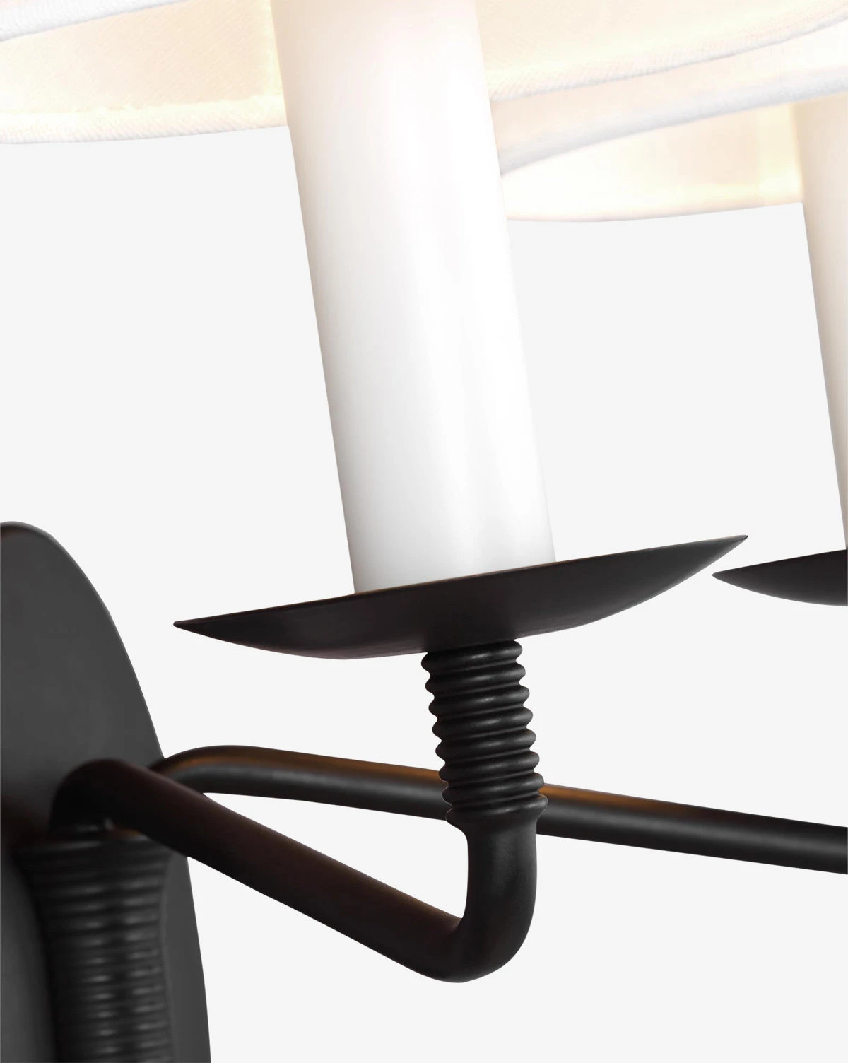 With dual white linen shades and textural details on the steel lamp body, the Sullivan Sconce brings a transitional style to your home. The aged iron finish is classic and versatile, and the uniquely constructed frame is full of character.