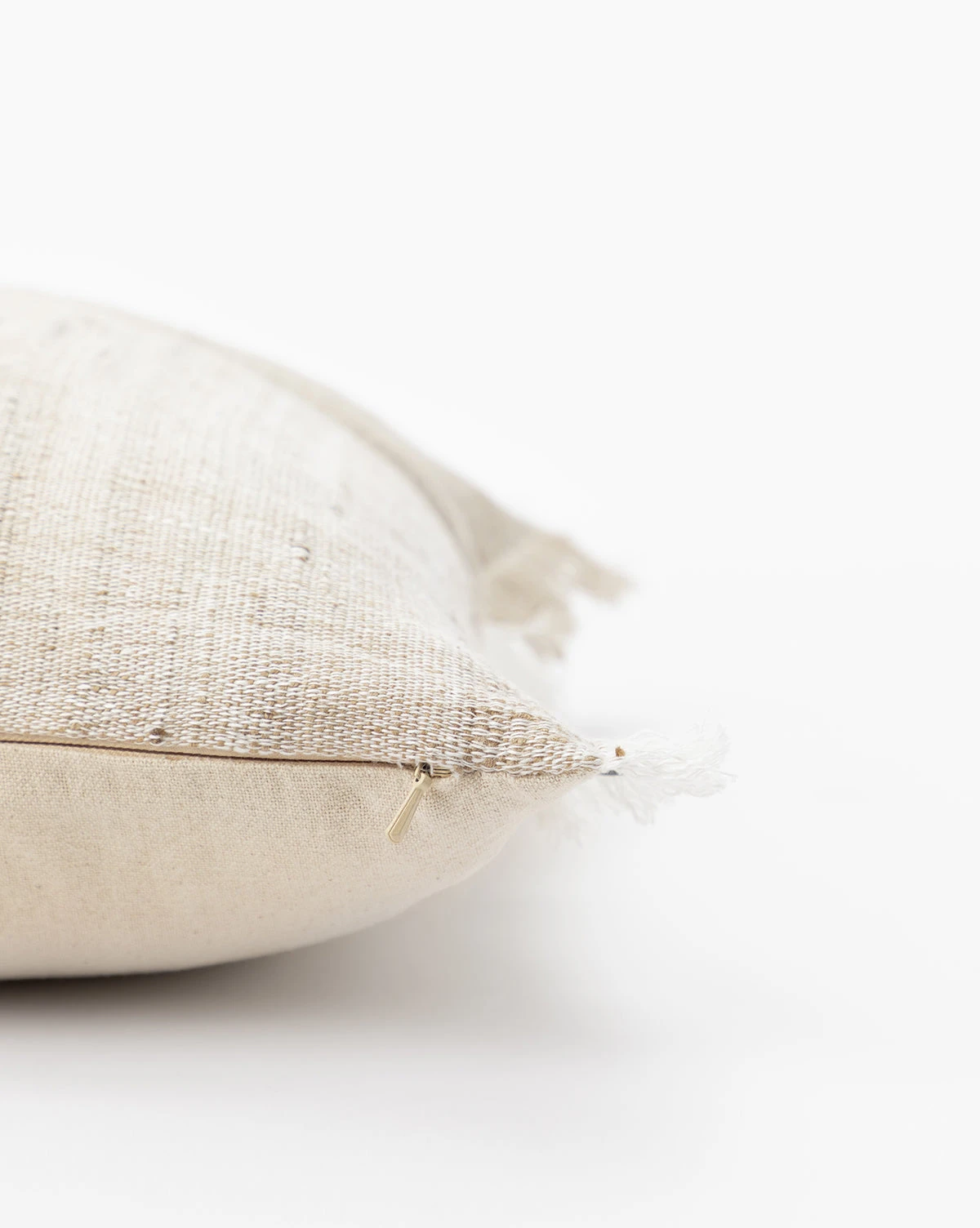 With a neutral palette, the Suzie Pillow Cover is highly textural in its pattern. The beautiful silk and linen material has natural detail in the fabric, complementing the tan block stripe that is offset in the pillow cover pattern. Complete with fringed edges, this lumbar pillow adds simple dimension to pillow vignettes. Â