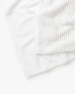 Crafted with 100% Aegean cotton, the Taupe Striped Bath Collection towels add a subtle yet luxurious feel to your bathroom. In a neutral palette and striped design, the towels are soft and absorbent, with the bath towel featuring a sewn in hanger loop.