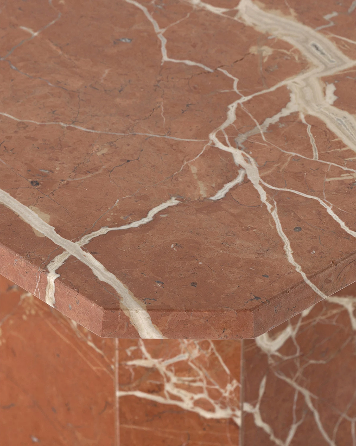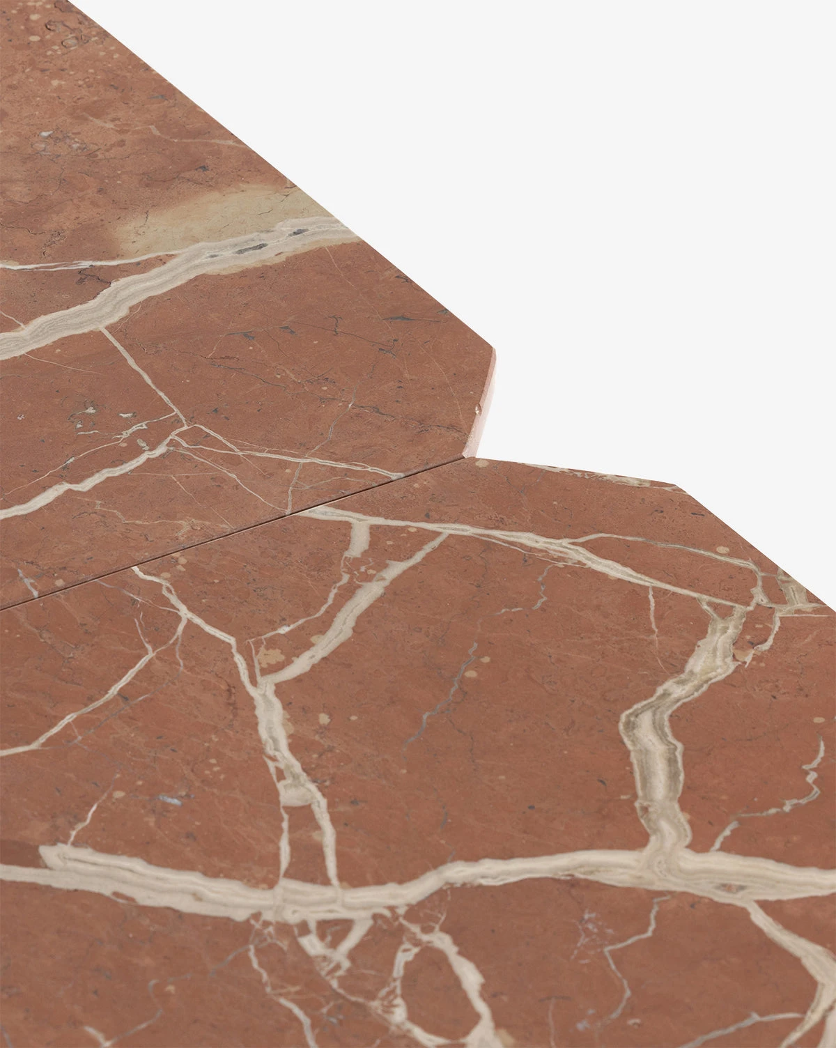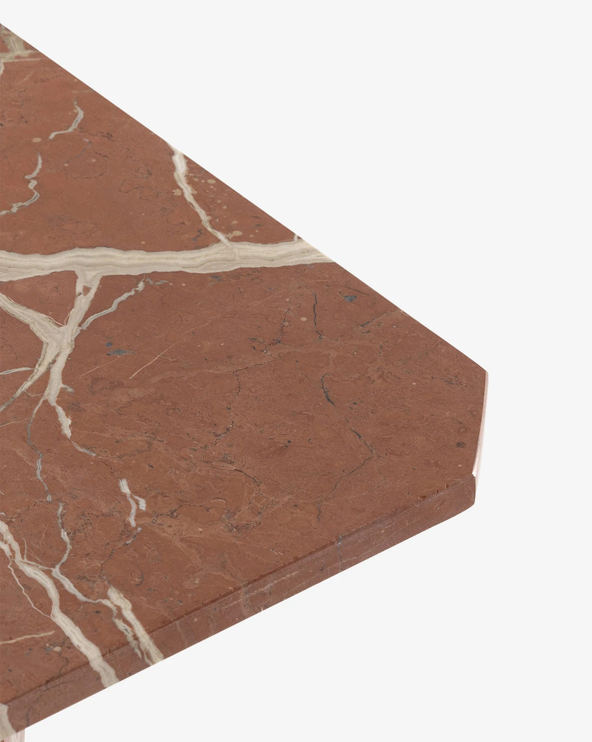 Presented as a set of two smaller tables to make up a larger surface area, the Tipton Coffee Table is a modern take on a classic material. Its solid marble bases are geometric and dimensional, supporting square marble tabletops. The rusty marble color displays natural white detail for beautiful contrast.