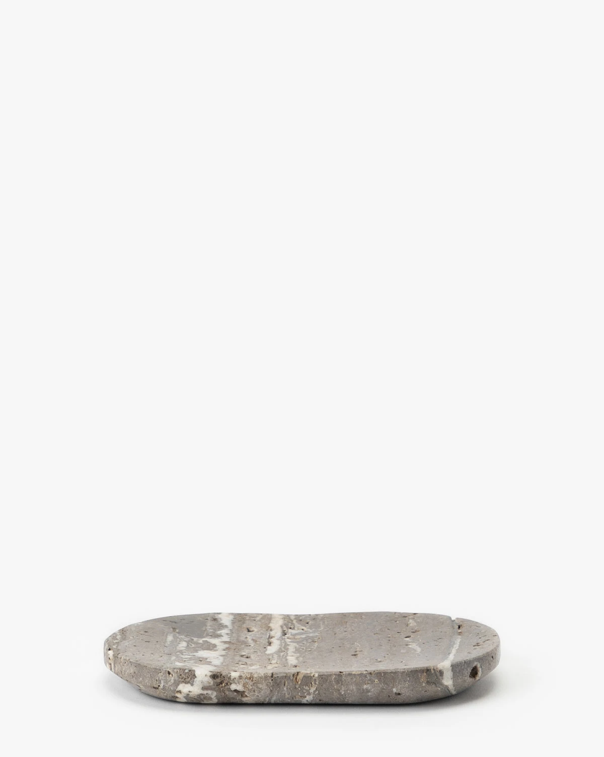 The elevated Travertine Soap Dish gives a natural, organic feel to the bathroom. Its sleek form meets function, keeping soap residue away from the bathtub and the bathroom looking beautiful with its natural gray hue.