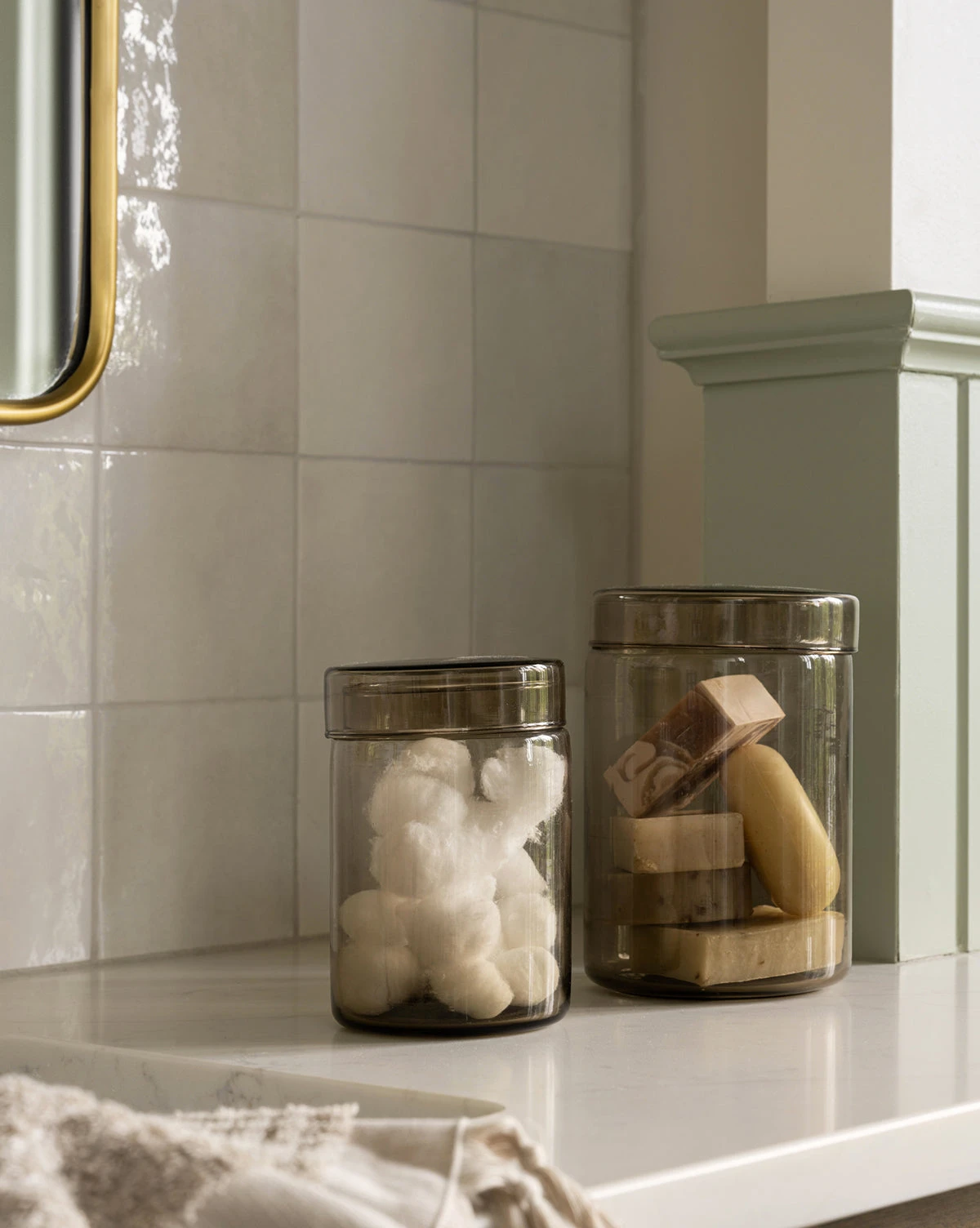 With a rich taupe color, the Tristan Glass Canister brings a sleek and modern element to your kitchen decor. Its simple cylindrical shape and unique glass lid lend both function and personality to shelves and countertops, however the canister is styled.