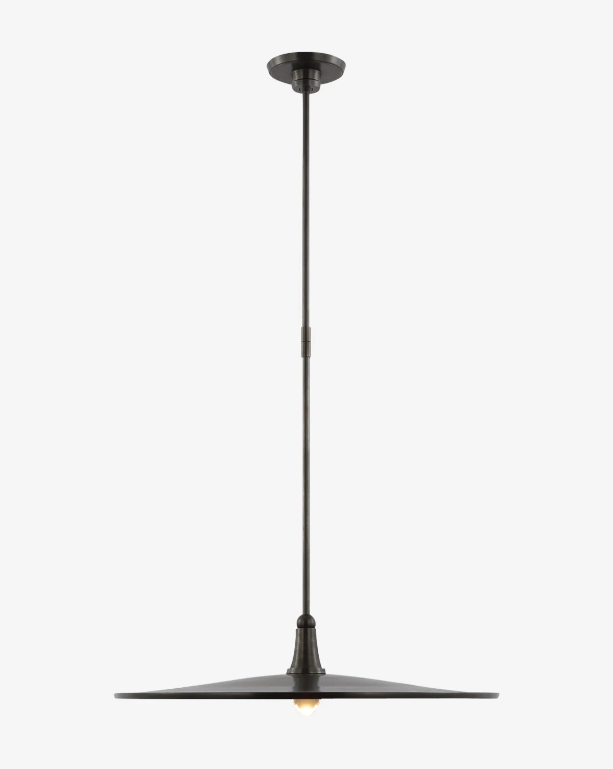 The Truesdell 24” Pendant strikes a balance between its sleek structure and its pronounced shade. In your choice of striking finish, the pendant makes a unique statement in lighting designs from the dining room to living room.