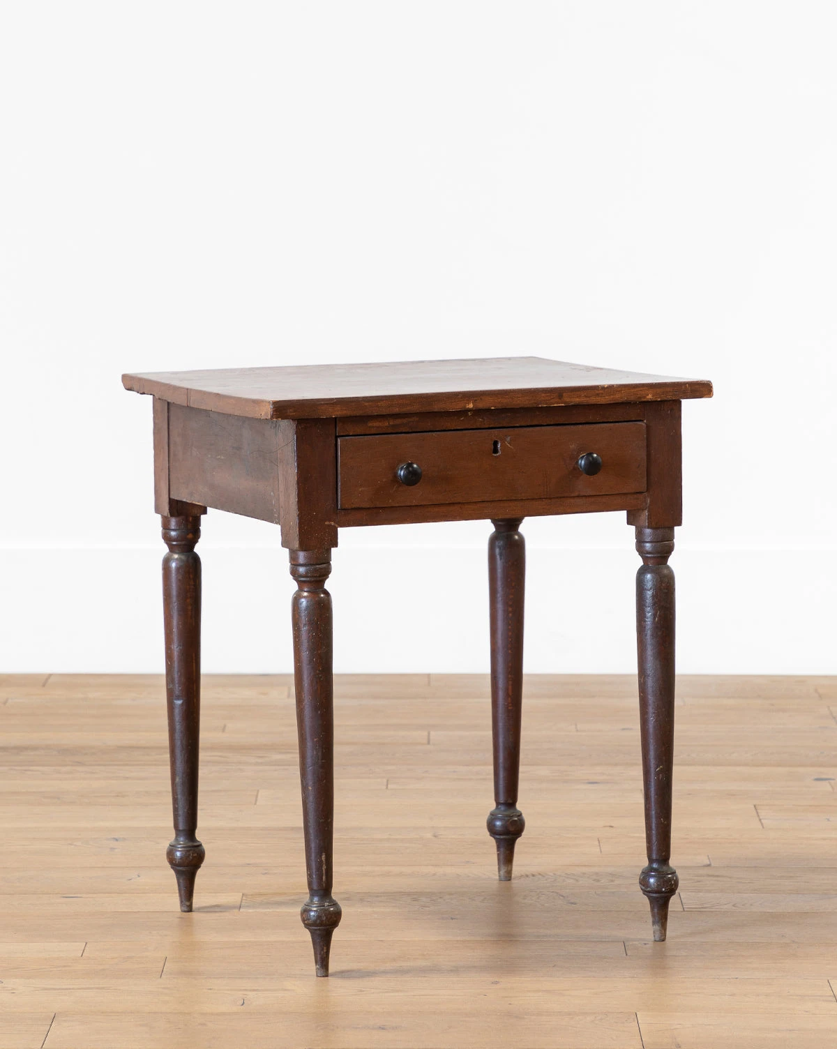 The Vintage Dark Wooden Side Table is full of personality and timeless details, from its spool feet to the round drawer pulls and keyhole. As part of our Vintage Collection, this vintage side table was hand-selected by our team for the unique character, heirloom quality, and beauty it will add to the home.