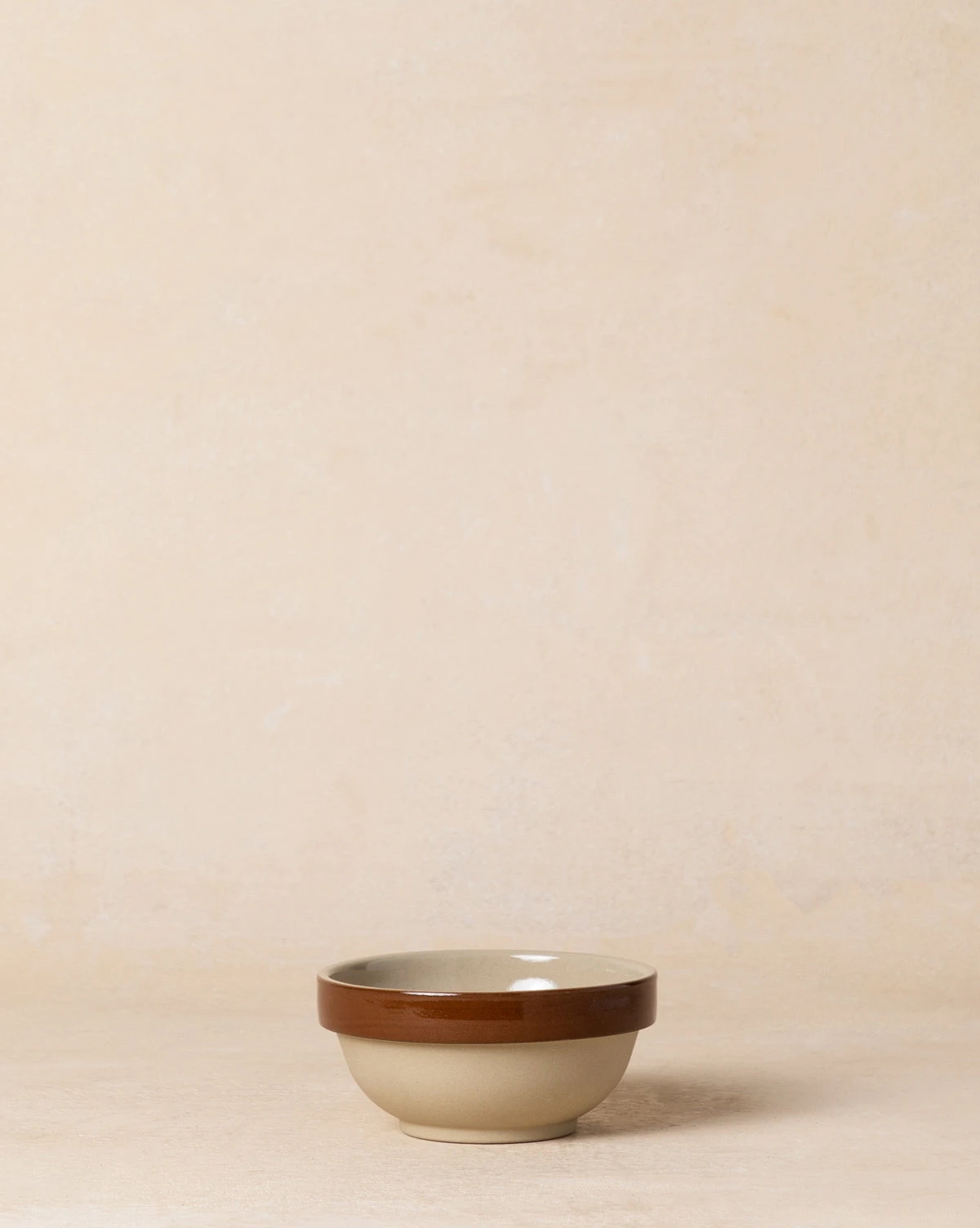 This one-of-a-kind Vintage French Glazed Bowl is entirely handcrafted. With a sandstone-like finish on the side of the bowl and a deliberately smooth, rich glaze on the rim and inside of the bowl, the contrast in texture and color give it depth. The feminine bowl shapes lend a timeless feel to any space, while its finishing touches create unique moments of interest.