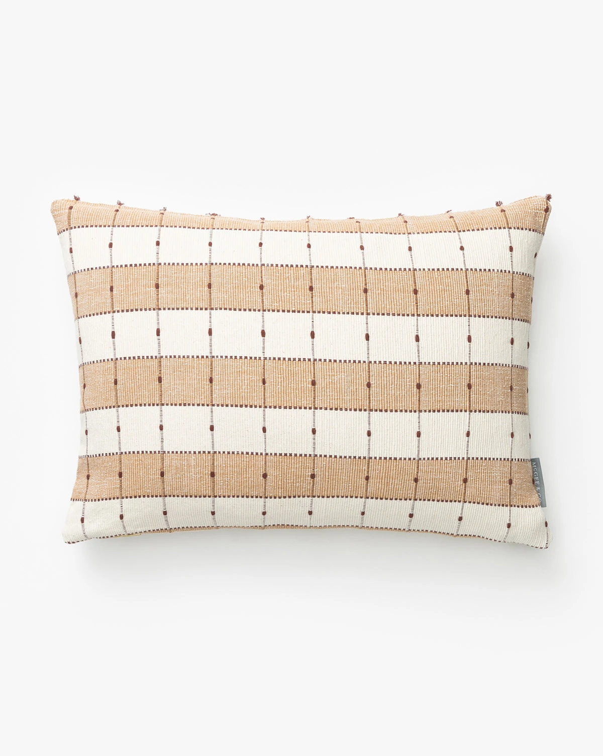 Textural and refined, Vintage Tan Check Pillow Cover No. 7 features an ivory and tan checkerboard stripe with dark brown lines and dots for an added layer of detail. As part of our Vintage Collection, this vintage pillow cover was hand-selected by our team for the unique character, heirloom quality, and beauty it will add to the home.ย