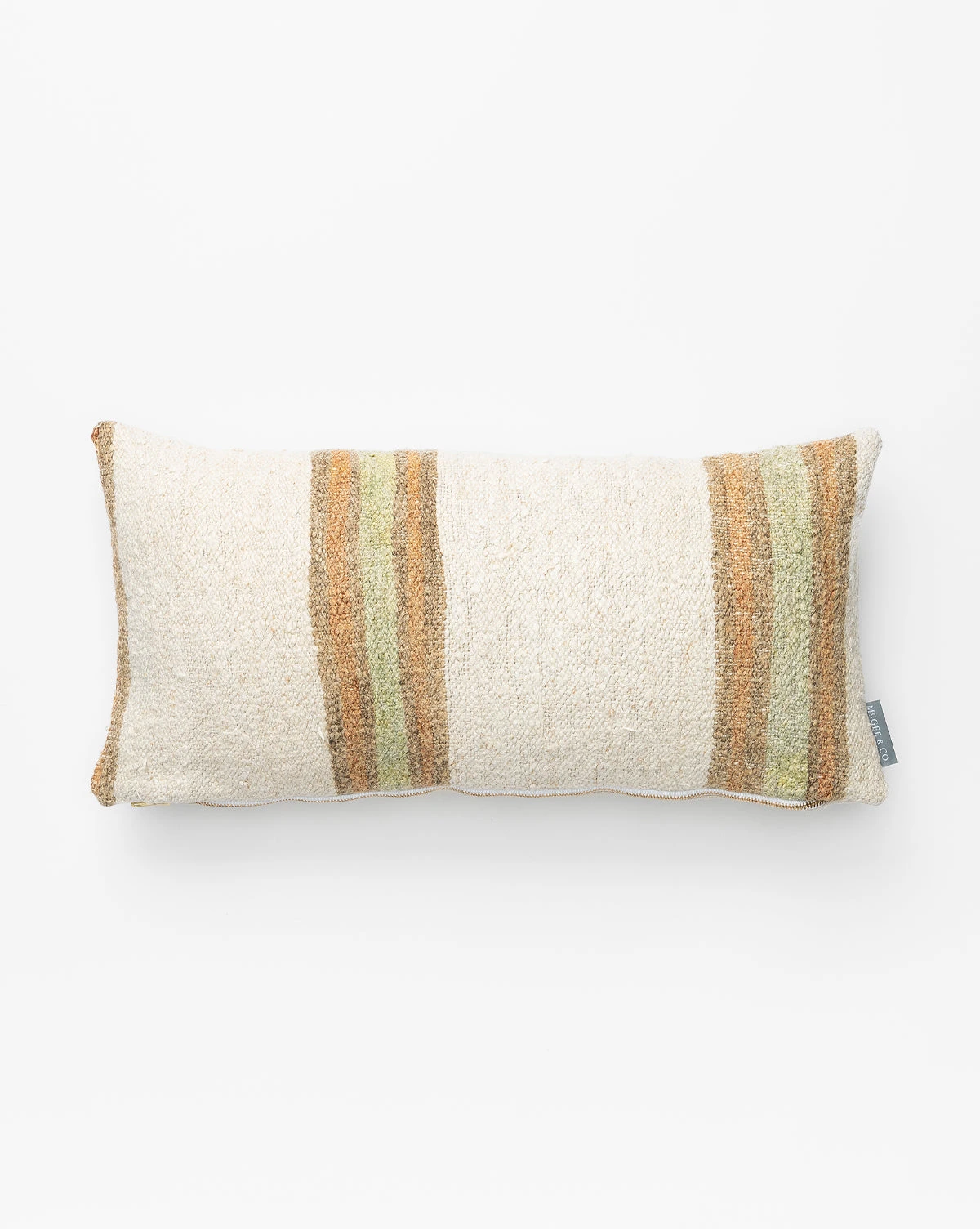 In a warm palette of muted cream, brown, and green, the Vintage Thick Striped Pillow Cover No. 2 is crafted from wool with a linen backing and features broad stripes. As part of our Vintage Collection, this pillow cover was hand-selected by our team for the character, heirloom quality, and beauty it will add to the home.Â