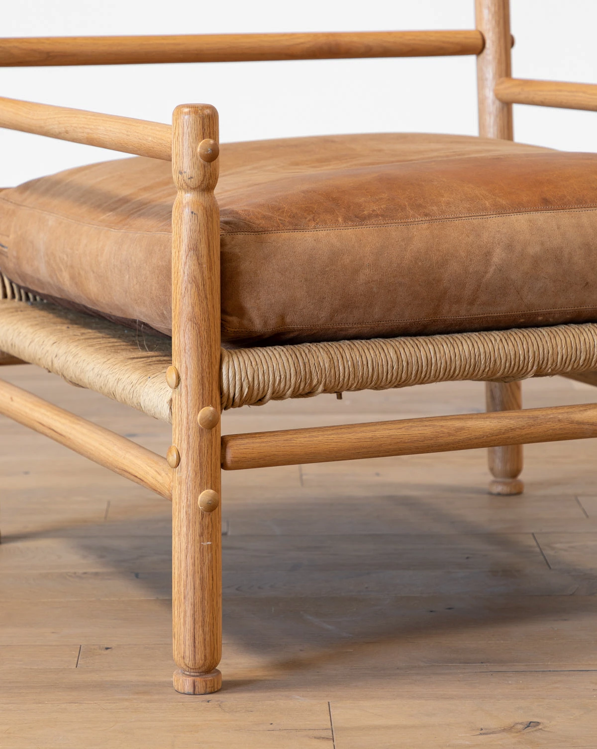 Featuring intricate details, the Vintage Woven Lounge Chair creates a moment of form meets function from its woven seat to its warm wood frame. Fitted with a comfortable cushion, this chair lends an intentional time-worn look and feel to your living room.