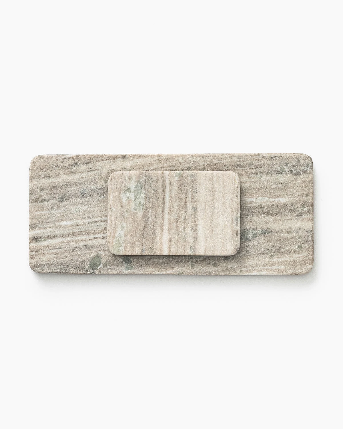 The Viviette Bath Collection gives an organic, sophisticated feel to bath styling. Its sleek form meets function, holding accessories or soap while providing elegant marble details to layer with your countertop vignettes.