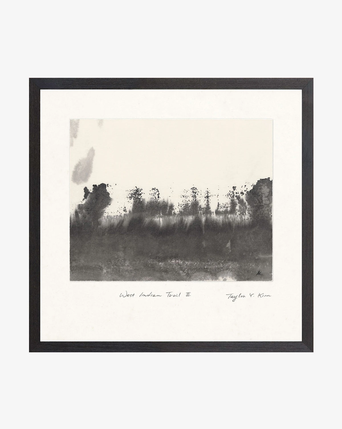 With abstract subtleties, Wander III depicts an atmospheric landscape in a monochromatic palette. Strong black washes create a potent image, offering a bold sense of contrast that refines nearly any space. Complete with a torn edge on the raised image, the piece is set within a deep charcoal frame.