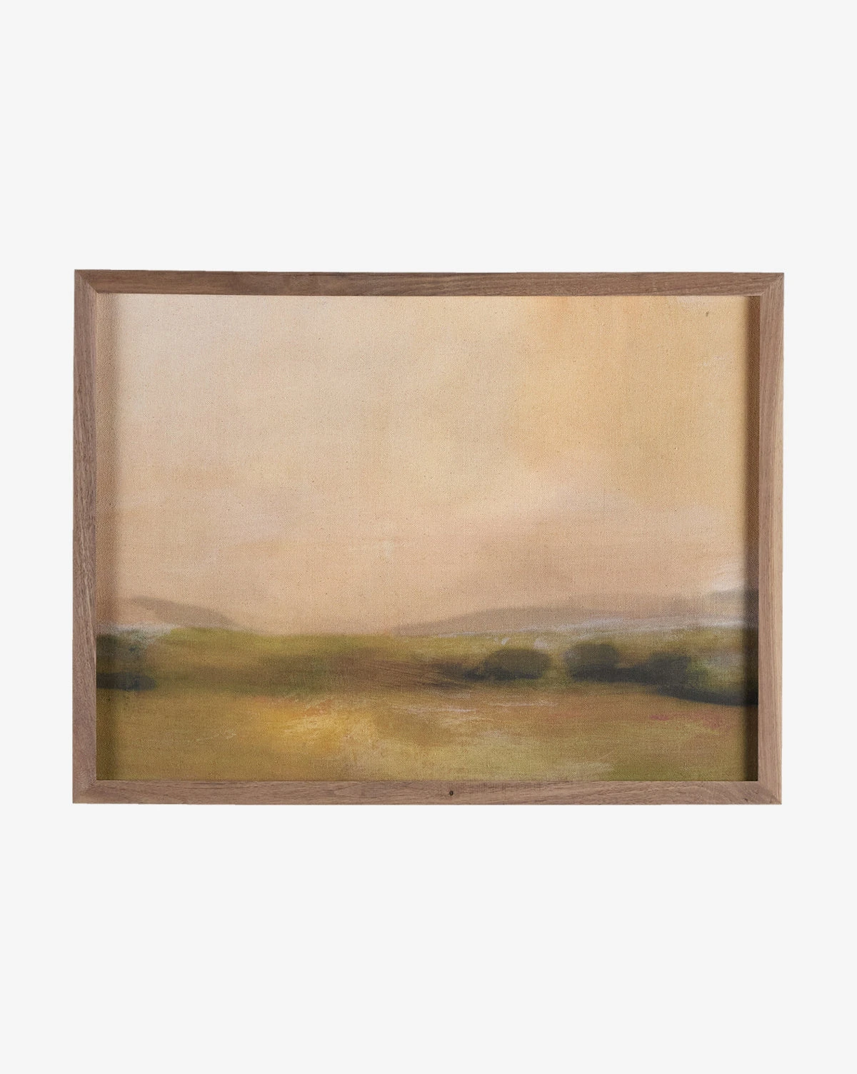 A calming landscape with a colorful and ethereal composition comes to life with each brush stroke in Warm Countryside. By artist Dan Hobday, this piece is a print on raw canvas within a walnut-finished frame, lending character and gallery-quality materials to your space. Â