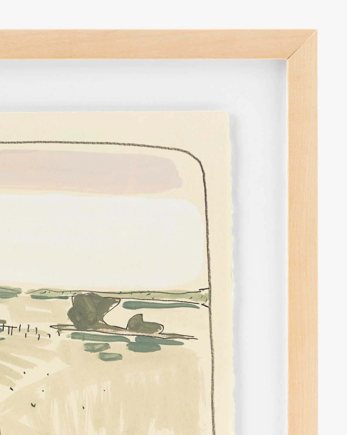 Taken from the sketchbook of artist Blakely Little, this exclusive original is painted in acrylic, gouache, and pastel and floated in a natural wood frame. Waterside 4 has a playful tone that fosters connection between the artwork and viewer, creating an heirloom-quality piece that is as timeless as it is endearing.