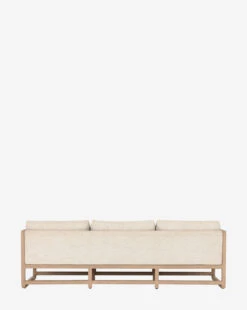 Crafted from teak and finished in a washed brown hue, the smooth curves of the Wembley Outdoor Sofa create an eye-catching moment within your outdoor styling. Upholstered in a neutrally toned outdoor-friendly fabric, this effortlessly comfortable bench seat sofa brings the best of both form and function wherever it’s placed.