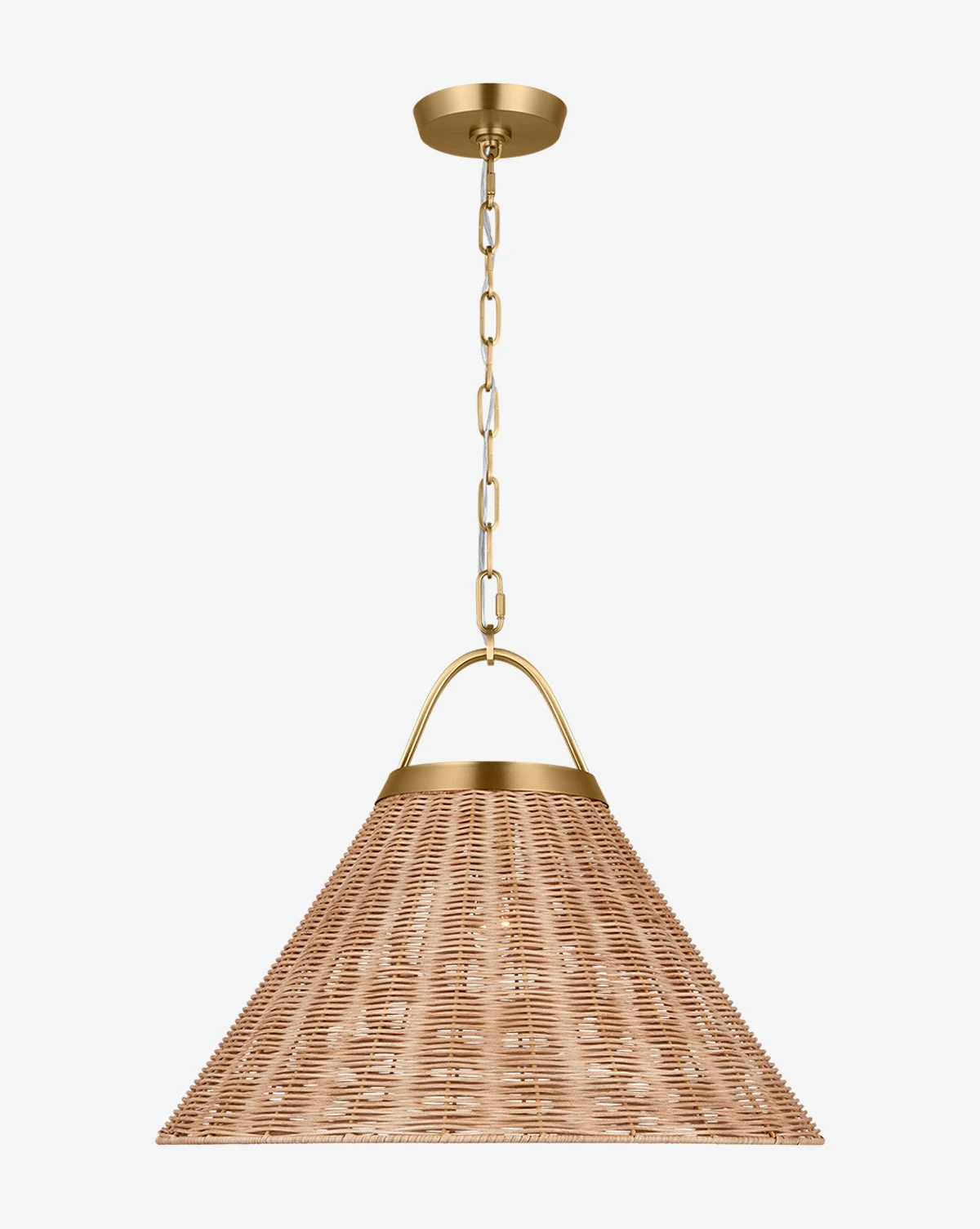 Featuring a streamlined yet organic bell-shaped shade with natural rattan, the Whitby Pendant brings an elevated mix of materials to your home. Seamlessly blending modern shapes with textural materials, this pendant brings an organic, airy tone everywhere from kitchens to dining rooms.