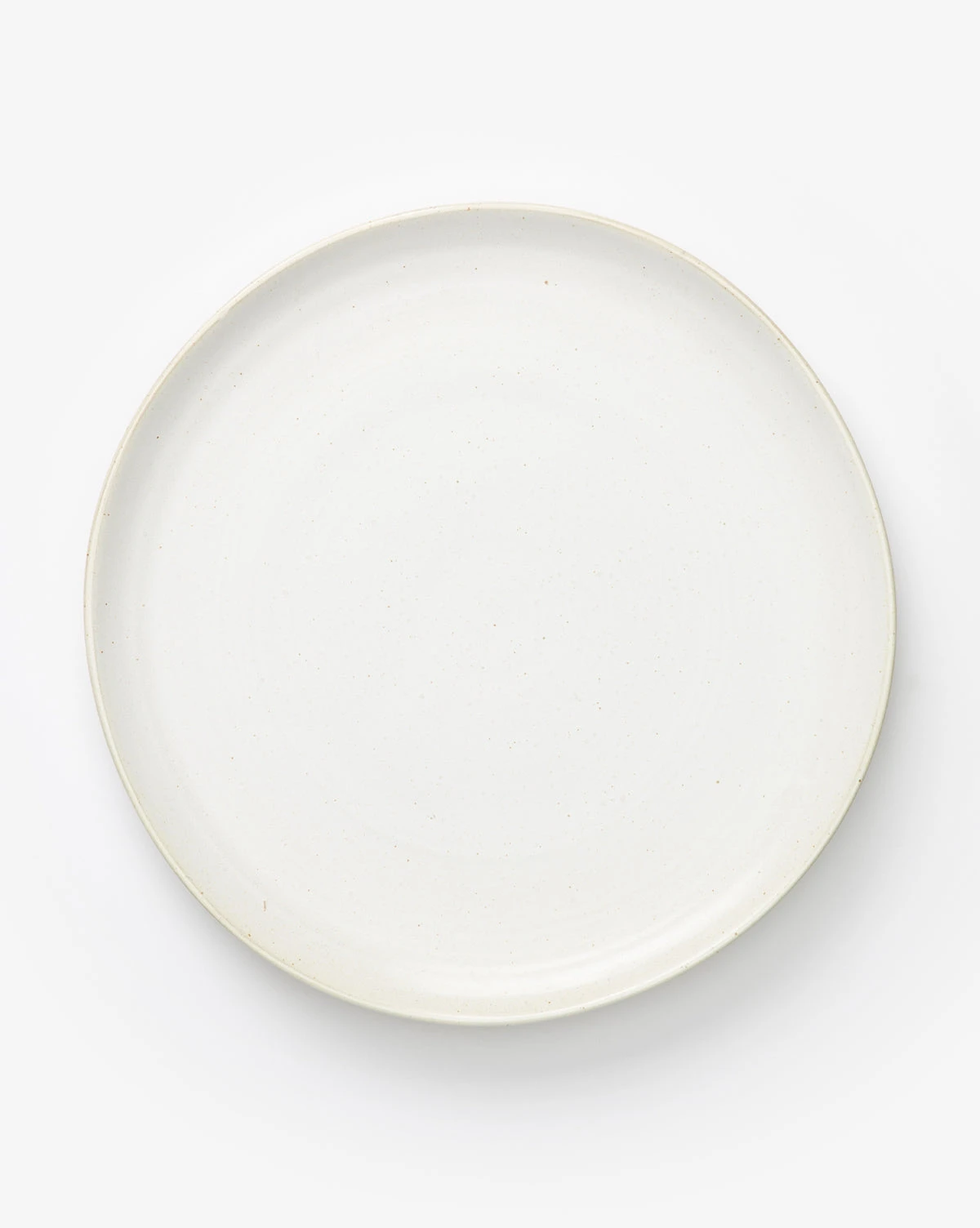 Small speckles on this White & Gray Porcelain Dinner plate add just enough detail to a classic or minimal modern kitchen. With thrown ceramic texture and raised sides that are perfect for serving, the plate is also a beautiful sight when displayed in a kitchen.