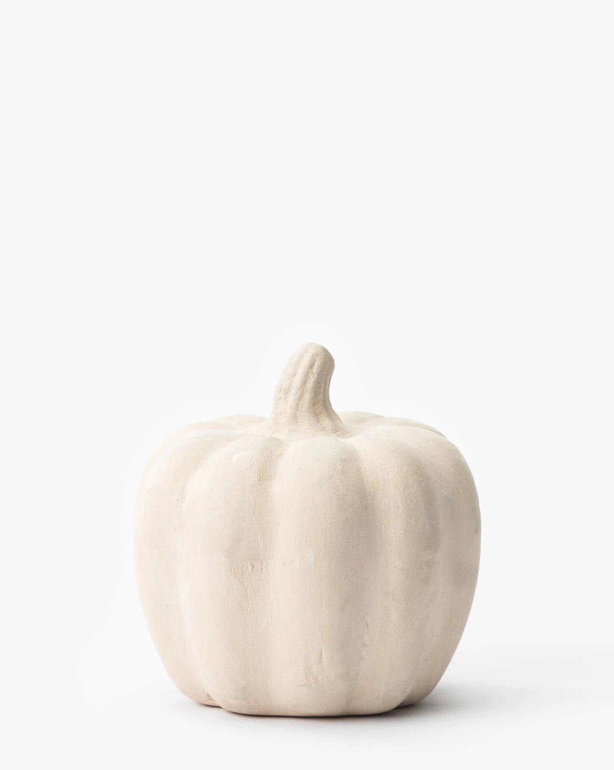Artistic in design and subtle in palette, the White Paper Mache Pumpkin is made entirely from paper mache. Styled in seasonal vignettes on a coffee table or mantel, the pumpkins lend a sophisticated playfulness to your decor.