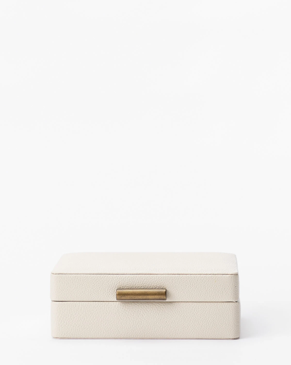 Finished in white shagreen with soft edges, the White Shagreen Box is perfect for adding height and interest to styling while also serving as a small, functional storage space. Complete with beautiful metallic hardware for a mix of materials that accentuates its leather construction, the White Shagreen Box gives soft visual appeal to your space.