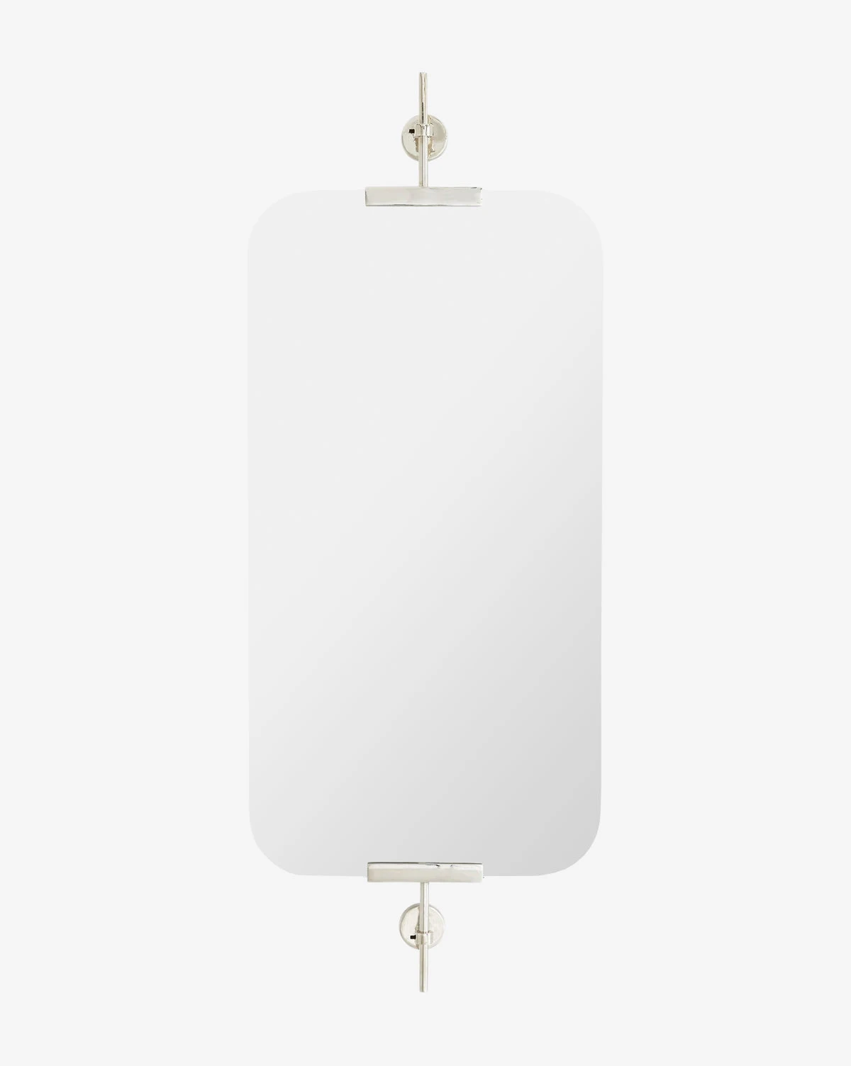 Add depth to your space with the Winona Mirror. Held by polished nickel or antique brass brackets, the mirror slightly hovers against the wall. Its creative design makes a modern impact in both small and large spaces.