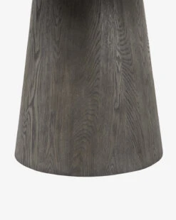 With mixed materials and a dramatic form, the Wynton Round Dining Table brings a sophisticated feel to any dining space. A white marble tabletop sits atop a weathered dark oak cone-tapered base and is surrounded by oak banding on the edges.