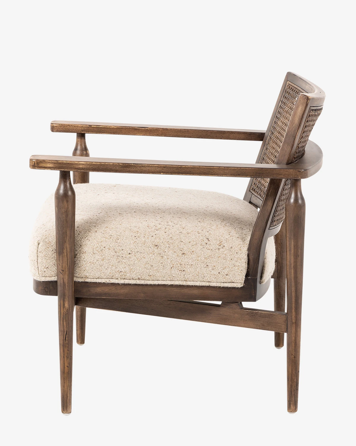 An updated take on the traditional lounge chair, the Zalan Lounge Chair is inspired by vintage styles. With a wood frame featuring a cane back and a stone-washed Belgian linen seat, the chair creates a comfortable, inviting space to settle in.