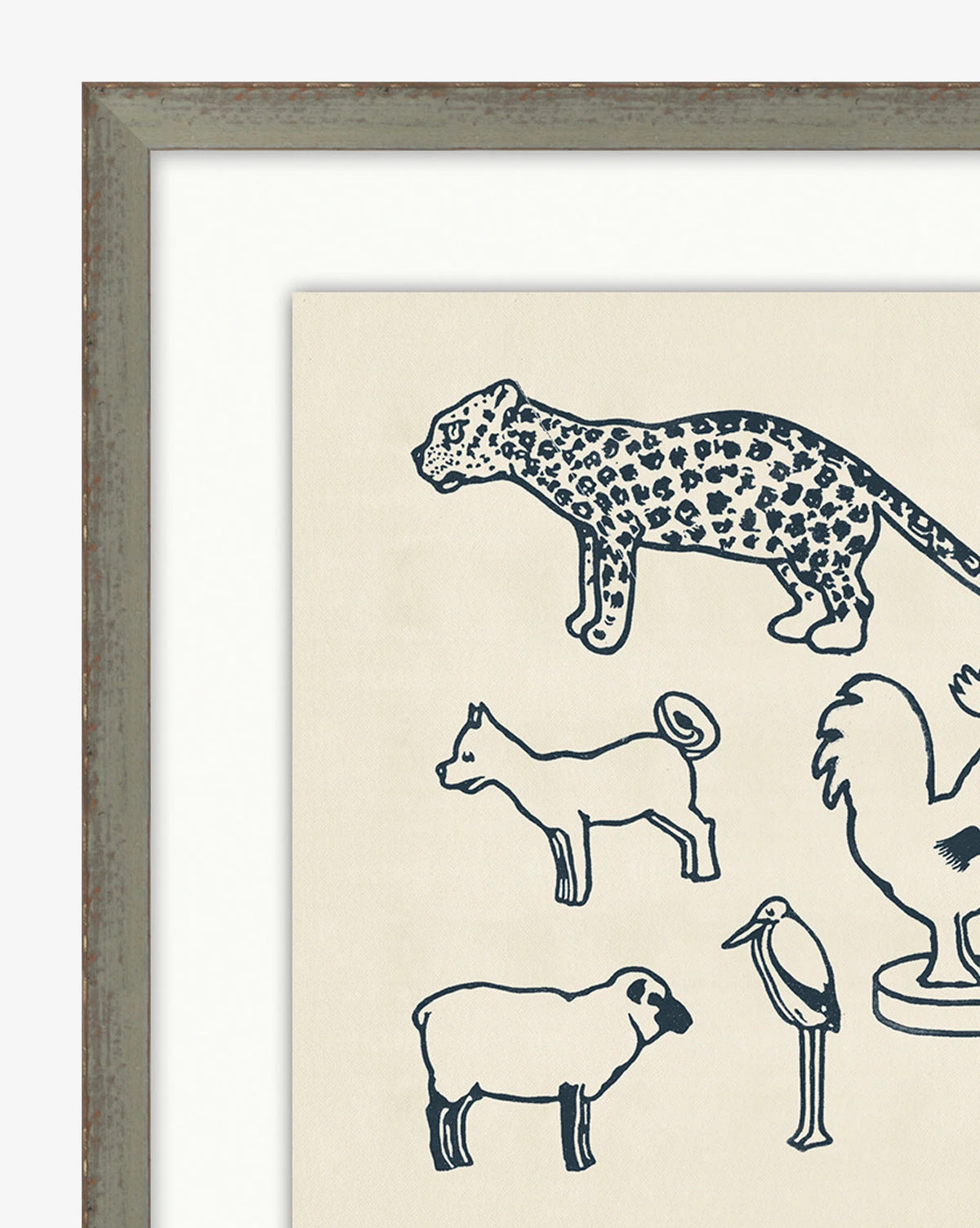 Clever and whimsical, the Zoo Cut-Outs is a giclee print on paper with straight-cut edges and floated on mat. Complete with plexiglass and mounted in a gray frame, this piece is composed of simple but bold linework that brings imagination to the kidโs room.ย ย